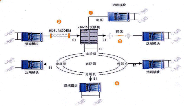 體系特點(diǎn):利用廉價的HDSL設(shè)備,可以直接使用銅線長距離傳輸E1信號,可以實(shí)現(xiàn)1:64倍的擴(kuò)容、線纜改造、提高線路利用率,并能夠簡化維護(hù)、方便管理。