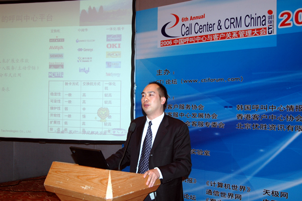 。。2006年4月3日至5日,2006中國呼叫中心與客戶關(guān)系管理大會(huì)在北京國際會(huì)議中心隆重召開,以下是4月4日下午專題演講的相關(guān)圖片報(bào)道: