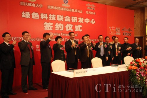 CTI論壇(ctiforum)2月3日消息(記者 潘婷):2月3日上午,思科公司與重慶郵電大學(xué)正式簽訂合作協(xié)議,共建“重慶郵電大學(xué)-思科綠色科技聯(lián)合研究實驗室”!熬G色科技聯(lián)合研究實驗室”的成立是思科履行其致力于推動中國創(chuàng)新和可持續(xù)發(fā)展承諾的重要舉措。此次合作中雙方將共同推動下一代互聯(lián)網(wǎng)、傳感器網(wǎng)絡(luò)以及綠色科技等領(lǐng)域的研發(fā),推進(jìn)應(yīng)用推廣和產(chǎn)業(yè)化發(fā)展,實現(xiàn)產(chǎn)學(xué)研一體化,幫助和支持重慶本土企業(yè)提高綠色科技創(chuàng)新的素質(zhì)和能力,進(jìn)而支持中國發(fā)展綠色經(jīng)濟、節(jié)能減排的長期戰(zhàn)略。