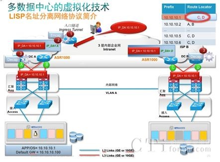 總之,不同的應(yīng)用需要不同類型的網(wǎng)絡(luò)連接特性,網(wǎng)絡(luò)的第二層和三層連接的組合可能會被要求支持不同的應(yīng)用。思科ASR1000提供的領(lǐng)先的數(shù)據(jù)中心的網(wǎng)絡(luò)虛擬化技術(shù)對上述應(yīng)用提供了完美的智能支持,局域網(wǎng)二層擴展技術(shù) OTV(Overlay Transport Virtualization) 和虛擬化精確定位技術(shù)LISP(Locator/ID Separation Protocol )具備諸多領(lǐng)先優(yōu)勢,通過LISP和OTV的組合可以解決虛擬化資源的遷移和業(yè)務(wù)連續(xù)等技術(shù)難題。