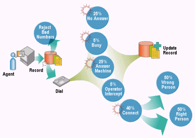 今天,幾乎所有人都已承認(rèn),手工撥號是聯(lián)絡(luò)中心生產(chǎn)力的最大殺手。采用手工撥號,業(yè)務(wù)代表的每小時將有多達(dá)45分鐘用于處理非生產(chǎn)性的呼叫,例如未獲得應(yīng)答或者接到忙音信號或答錄機(jī),而僅有15到20分鐘實(shí)際花費(fèi)在實(shí)時交談上。