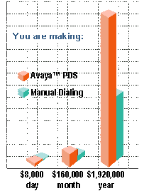 當(dāng)采用手工撥號時,業(yè)務(wù)代表在實(shí)際接通前必須一直撥號。下面的例子為我們顯示了手工撥號的低下效率。