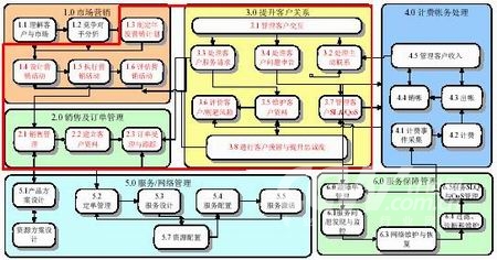 AIOpenCRM將重點(diǎn)支持客戶/市場層面的服務(wù)開通、服務(wù)保障的內(nèi)容,具體包含了市場營銷、銷售及訂單管理、提升客戶關(guān)系、計(jì)費(fèi)帳務(wù)處理、服務(wù)開通管理、服務(wù)報(bào)障管理這六個(gè)高層流程的前三個(gè)。如下圖: