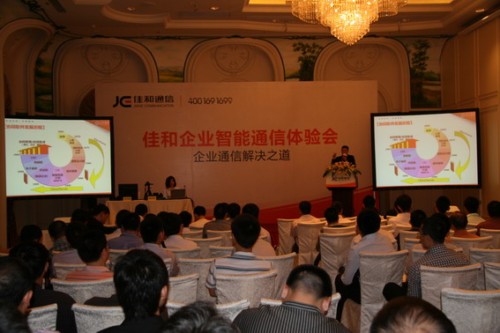 CTI論壇(ctiforum)4月25日消息(記者 潘婷婷): 廣東佳和通信技術有限公司主辦的首場企業(yè)智能通信體驗會,于2011年4月13日在廣州富力麗思卡爾頓酒店隆重召開,并取得圓滿成功。此次體驗會來自佳和通信的負責人和業(yè)內(nèi)專家就佳和企業(yè)智能通信平臺的應用以及協(xié)同辦公的發(fā)展趨勢發(fā)表了主題演講,為所有到場的100多位來賓做了詳實的介紹。同時展示了佳和“!毕盗械7個應用解決方案,并對拳頭產(chǎn)品——智能IP話機T600、移動分機M600、個人助理軟件IPA PRO等進行了現(xiàn)場演示和互動,其目的在于使現(xiàn)場嘉賓充分感受企業(yè)智能通信的價值和魅力,同時親身體驗到如何在在加速辦公自動化的同時提高企業(yè)效率、節(jié)約成本。