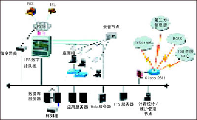 本項(xiàng)目采用新太科技交互式電話會(huì)議系統(tǒng)2.0版,系統(tǒng)各組成部分見(jiàn)圖1。前端接入設(shè)備采用SUNTEK-IPS數(shù)字排隊(duì)機(jī),負(fù)責(zé)多方電話會(huì)議用戶和其他業(yè)務(wù)用戶接入的交換排隊(duì)、自動(dòng)語(yǔ)音資源提供、座席服務(wù)資源提供、錄音、計(jì)費(fèi)等等。SUNTEK-IPS數(shù)字排隊(duì)機(jī)是新太科技最新一代軟交換平臺(tái),是整個(gè)系統(tǒng)平臺(tái)的核心。它綜合了新太科技?xì)v代平臺(tái)的優(yōu)勢(shì),采用世界上最先進(jìn)的軟交換(包交換)技術(shù)和CompactPCI技術(shù),支持主控CPU卡冗余和熱拔插,擁有更大規(guī)模的交換系統(tǒng)總線(CompactPCI的CTBus總線共有4096個(gè)時(shí)隙,理論上,單個(gè)機(jī)框可以支持4k×4k的交換)。SUNTEK-IPS數(shù)字排隊(duì)機(jī)基于自主開發(fā),擁有自主產(chǎn)權(quán),保證了極高的性價(jià)比,已經(jīng)通過(guò)了信息產(chǎn)業(yè)部入網(wǎng)認(rèn)證。SUNTEK-IPS數(shù)字排隊(duì)機(jī)現(xiàn)已在十多個(gè)省成功開展全省業(yè)務(wù)的事實(shí),證明了它具備技術(shù)先進(jìn)、可靠性強(qiáng)等特點(diǎn)。