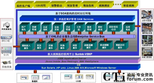 新太視頻監(jiān)控聯(lián)網(wǎng)管理平臺采用J2EE開放式架構,可以在WINDOWS/LINUX操作系統(tǒng)下運行,具有強大的伸縮性。