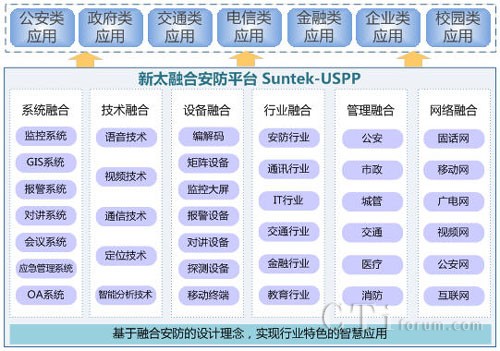 新太融合安防平臺(SUNTEK-USPP)是基于現(xiàn)代安防和融合通信技術,集海量信息采集、智能分析、精準處理于一體的國內一流,國際領先的安防綜合應用管理平臺。平臺采用開放的技術框架,通過對公共安全領域的信息管理、治安管理、安全防范和應急指揮等進行系統(tǒng)融合、資源共享和功能聯(lián)動,實現(xiàn)人防、物防、技防等各種資源和手段的有效整合,達到信息共享、資源調度、決策指揮的高度統(tǒng)一、靈活運轉和及時有效。