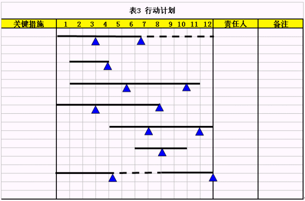 有經(jīng)驗的管理者都有體會,年度規(guī)劃對于全年的工作將產(chǎn)生決定性影響,因此在設(shè)計每一個關(guān)鍵措施的時候,多想想 "問題"和"風(fēng)險"是非常有好處的。表1是規(guī)劃關(guān)鍵措施的工具,將有助于我們思考的更加全面。