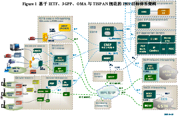 主要從固定網(wǎng)的角度研究以IMS為核心控制系統(tǒng)的FMC目標網(wǎng)絡(luò)架構(gòu),制定了基于IMS的NGN/FMC相關(guān)規(guī)范,在3GPP與TISPAN的聯(lián)合工作下,TISPAN的IMS取得了不小的進展。OMA采用IMS開發(fā)業(yè)務(wù)引擎,并制定端到端業(yè)務(wù)引擎的規(guī)范
