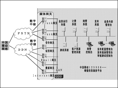 中國(guó)移動(dòng)1259061增值信息服務(wù)平臺(tái)采用青牛軟件公司提供的網(wǎng)絡(luò)中間件產(chǎn)品。這個(gè)平臺(tái)采用移動(dòng)通信網(wǎng)絡(luò)負(fù)責(zé)處理全國(guó)的呼叫接入,將來自全國(guó)的電話呼叫通過長(zhǎng)途網(wǎng)從北京局匯入到該增值信息服務(wù)平臺(tái)上。呼叫分布到多臺(tái)服務(wù)器上,青牛網(wǎng)絡(luò)中間件實(shí)現(xiàn)話路的處理、語音的播報(bào)、數(shù)據(jù)的統(tǒng)計(jì)等等。