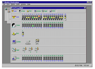 VoiceMaster的Monitor Workstation是一個(gè)為提供即時(shí)系統(tǒng)功能和動(dòng)態(tài)信息而設(shè)計(jì)的通用工具程序。監(jiān)控工作站(Monitor Workstation)顯示系統(tǒng)組件和系統(tǒng)操作特性、通訊線路、主控計(jì)算機(jī)的連接情況、不間斷電源(UPS)及磁盤容量等各自實(shí)時(shí)狀態(tài)的圖形簡(jiǎn)報(bào)。當(dāng)有問題或出錯(cuò)時(shí)產(chǎn)生報(bào)警及警告信息來通知系統(tǒng)管理員。