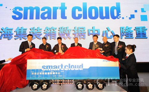 圖:參加發(fā)布會的領導嘉賓為云海集裝箱數(shù)據(jù)中心模型揭幕