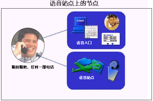 在語音網上,內容和服務將會以兩種方式出現即個人語音站點和語音入口。語音入口和語音站點都屬于網絡上的節(jié)點,這兩者由一個標準的語音瀏覽器連接起來,關于這部分內容,將在以后進行描述。
