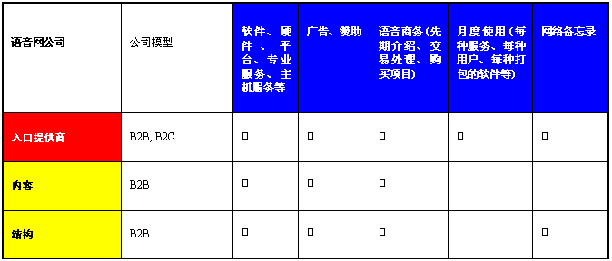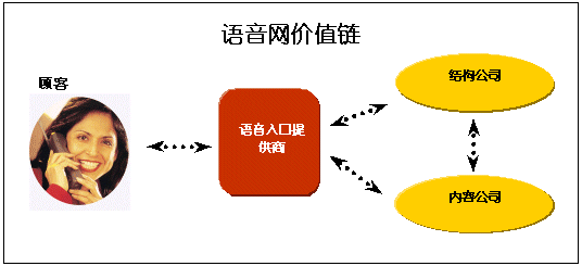 “第一個吃螃蟹”的公司僅僅注重提供語音入口服務,語音網使這些公司有機會通過電話經營互聯網商務模型。