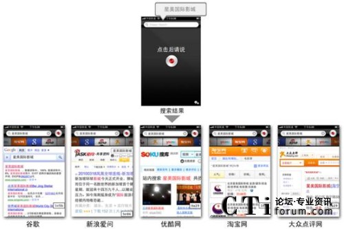 適用于iPhone™、iPad™和iPod touch™的聲龍搜索(Dragon Search)同時(shí)也在蘋果 App Store推出,為用戶提供強(qiáng)大的語(yǔ)音搜索功能;谠摦a(chǎn)品,用戶只需說(shuō)出自己的搜索要求,便可通過(guò)移動(dòng)網(wǎng)絡(luò)找到相應(yīng)的信息和答案。 另外,聲龍搜索(Dragon Search)創(chuàng)新的搜索功能界面(Dragon Search Carousel)還可以支持用戶同時(shí)訪問(wèn)包括谷歌、新浪愛(ài)問(wèn)、優(yōu)酷網(wǎng)、淘寶網(wǎng)和大眾點(diǎn)評(píng)網(wǎng)等多個(gè)熱門網(wǎng)站和搜索引擎,并在幾秒鐘內(nèi)獲得來(lái)自多個(gè)內(nèi)容來(lái)源的搜索結(jié)果。