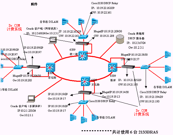 1). 運營支撐系統(tǒng): Dr.COM2133計費管理系統(tǒng)(6臺2133BRAS+1套OSS運營平臺)