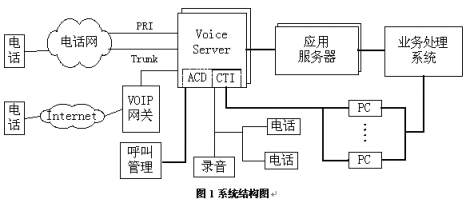 通過(guò)業(yè)務(wù)處理系統(tǒng),一方面為ACD系統(tǒng)提供基于產(chǎn)品信息、客戶信息的路由分配方式,為客戶提供更為迅速,更為個(gè)性化的服務(wù);另一方面為IVR、座席等系統(tǒng)提供數(shù)據(jù)庫(kù)訪問(wèn)服務(wù)、文件服務(wù)。同時(shí)應(yīng)用服務(wù)器還提供認(rèn)證加密、系統(tǒng)管理配置、網(wǎng)關(guān)等功能。