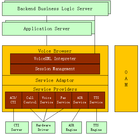 o 功能豐富:支持VoiceXML 2.0的全部現(xiàn)有功能,支持主流PBX、CTI中間件、語音呼入\出、傳真等功能,支持語音識別(ASR)和語音合成技術(TTS)。
