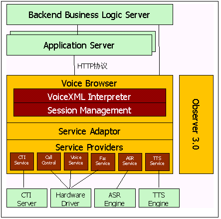 應(yīng)用服務(wù)器采用分布式對象模型,業(yè)務(wù)處理層采用Web服務(wù)器作為處理核心,所有的自動語音業(yè)務(wù)和人工座席業(yè)務(wù)都是在這里進(jìn)行處理的,這樣便于系統(tǒng)集中維護(hù),便于系統(tǒng)擴(kuò)充,增加系統(tǒng)靈活性,可以動態(tài)在線修改和增加業(yè)務(wù)功能,減少系統(tǒng)維護(hù)量。