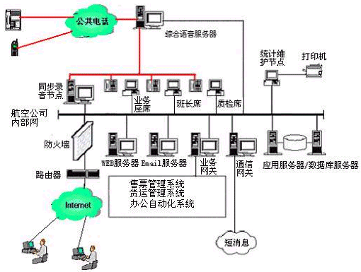 。。本系統(tǒng)提供基于計算機語音板卡和排隊交換機兩種語音接入方式,都支持1號和7號信令線路的接入。對于大中型的航空公司客戶服務中心系統(tǒng),可選用排隊交換機作為語音接入設備,保障系統(tǒng)的可靠性和穩(wěn)定性;對于20個以下座席的中小型航空公司客戶服務中心系統(tǒng),則建議使用基于計算機語音板卡的形式,可以減少企業(yè)投資,同時具有良好的系統(tǒng)性能。