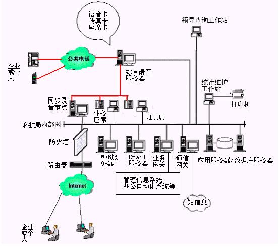 由于原有的電話系統(tǒng)普遍采用人工方式,工作效率低(如經(jīng)常出現(xiàn)忙音或占線現(xiàn)象)、信息共享能力差,線路數(shù)量少、受話能力低,越來越不能滿足企業(yè)或個人的需要,科技局電話難打成為企業(yè)與個人反映強烈的意見和呼聲。有必要運用現(xiàn)代通信網(wǎng)絡(luò)技術(shù)和計算機技術(shù),即客戶服務(wù)中心(也稱為呼叫中心,CALL