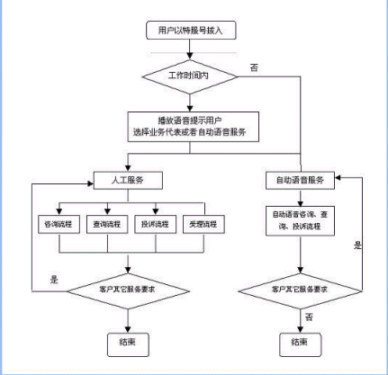 客戶也可以選擇自動語音服務(wù)方式,根據(jù)系統(tǒng)的語音提示輸入按鍵,選擇類別,將自己所需要的服務(wù)要求以及自己的聯(lián)系方式信息以留言錄音的方式保存在系統(tǒng)中。系統(tǒng)同時還支持自動傳真方式,客戶可以通過傳真機進入本系統(tǒng),通過按鍵選擇傳真方式,將所需要的服務(wù)要求等的文本內(nèi)容傳真給系統(tǒng),系統(tǒng)自動接受并存入數(shù)據(jù)庫。