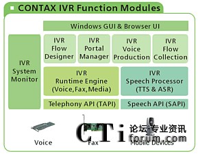 CONTAX IVR 就在PC上運作,可以隨時隨地保證公司與客戶、員工之間,以及與投資者、合作伙伴之間的通信,即時地、自動地獲得資訊,完成交易。
