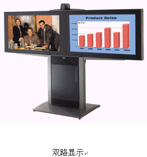 為在視頻會議中提供更高效的應(yīng)用,視頻會議產(chǎn)品制造商不約而同地提出了"雙流"的概念。其中以POLYCOM的PEOPLE+CONTENT(人物+內(nèi)容)和TANDBERG的Duo Video(雙路視頻傳送)為代表。