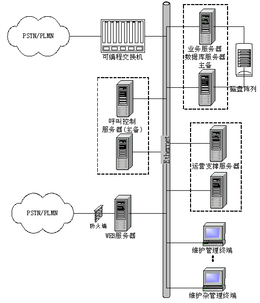 數據庫服務器是系統的系統數據和呼叫記錄(CDR)的數據儲存單元,支持SQL Server 2000、Oracle、Sybase等通用關系數據庫。用戶數據備份可提供數據庫自身備份方式、數據庫熱備份冗余方式。