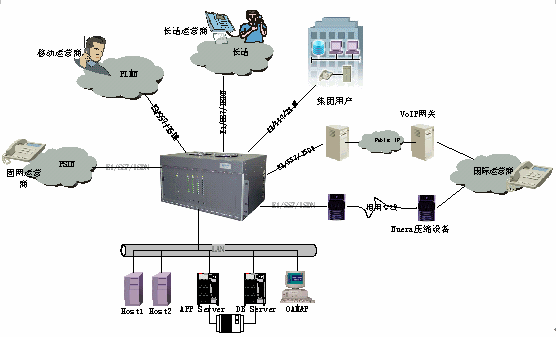 該系統是基于開放式可編程交換平臺,以開放式、模塊化的設計思想,采用業(yè)界最先進的開放式可編程交換技術、信令網關技術、媒體網關技術、IVR技術和網絡技術,專門為電信運營商設計的能無縫融合多種網絡、在同一平臺上靈活提供多種電信增值業(yè)務的運營級綜合業(yè)務平臺系統。它融入了眾多電信業(yè)務轉售商、IP電話運營商、虛擬電信運營商和增值電信服務商的實際運營經驗,以強大的功能和實用性幫助新興的中、小型電信運營商快速進入國際、國內長途電話話務轉售、預付費電話卡、后付費電話、自動呼叫轉移等市場,提高效率并獲取最大的收益和回報。