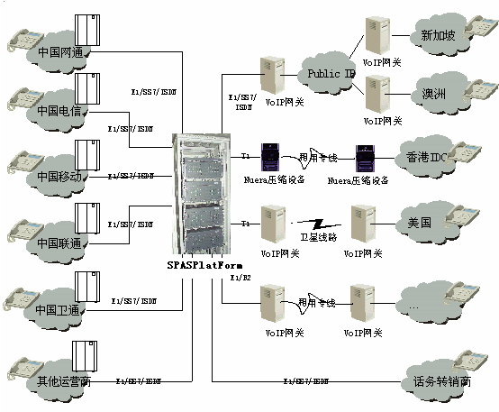 深圳斯普瑞特公司在積累多年電信業(yè)務應用產品開發(fā)的基礎上,根據新興運營商的特點專門構造了一個電信運營綜合業(yè)務平臺(SPASPlatForm平臺)。該業(yè)務平臺采用世界上最先進的開放式的設計思路,既可配合各類型的板卡和傳統交換使用,又可配合先進的開放式可編程交換平臺使用,還可適應下一代網絡(如:軟交換)。該業(yè)務平臺軟件采用模塊化設計,可根據用戶的需要在同一平臺上實現多種業(yè)務,包括:話務轉售;預付費電話卡;后付費電話;電話呼叫跟隨轉移;會議電話等,還可根據需要生成其他新的業(yè)務。