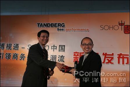 11月20日,地點(diǎn)北京,作為全球領(lǐng)先的網(wǎng)真、高清視頻會議和移動視頻產(chǎn)品和服務(wù)供應(yīng)商,騰博(TANDBERG)視通公司向中國成功商業(yè)精英的代表、SOHO 中國有限公司董事會主席潘石屹贈送騰博(TANDBERG)視通 1700MXP 高清視頻通信產(chǎn)品。此舉標(biāo)志著代表全球領(lǐng)先辦公方式的騰博(TANDBERG)視通高清視頻正式進(jìn)駐SOHO 中國,商業(yè)精英潘石屹將在商業(yè)溝通方式上引領(lǐng)新的潮流。