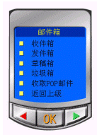 下設收件箱、發(fā)件箱、草稿箱、垃圾箱、收取POP郵件五項菜單。