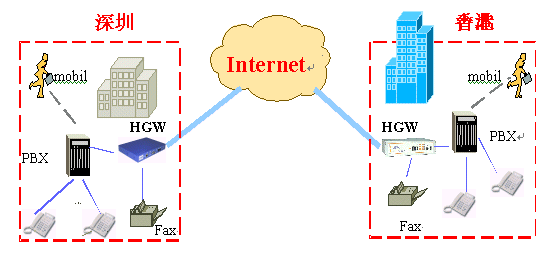 VOIP即是Voice Over IP,是把話音或傳真轉(zhuǎn)換成數(shù)據(jù),然后與數(shù)據(jù)一起共享同一個IP網(wǎng)絡(Internet互聯(lián)網(wǎng))。深圳海恒科技有限公司提供的企業(yè)網(wǎng)通訊系統(tǒng),是一種直接接普通電話,通過Internet網(wǎng)絡撥打國際長途電話的設備,通話質(zhì)量接近IDD長途電話,廣泛適用于國內(nèi)外中小型外向型企業(yè)。使用海恒企業(yè)網(wǎng)絡通訊系統(tǒng),企業(yè)內(nèi)部通訊(包括電話和傳真)所有費用都將全部為零。