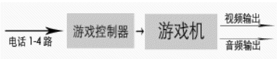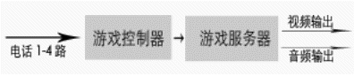 由于許多地區(qū),尤其是縣級(jí)市沒(méi)有信息平臺(tái),而且許多電視臺(tái)愿與電話(huà)局直接合作。在這種情況下,電話(huà)局和電視臺(tái)合作對(duì)有線(xiàn)用戶(hù)公布 特服號(hào)碼,如123456,參與互動(dòng)游戲的用戶(hù),統(tǒng)一撥打該號(hào)碼,電話(huà)局提供四條用戶(hù)線(xiàn)給互動(dòng)游戲系統(tǒng),同時(shí)對(duì)撥打123456的用戶(hù)都轉(zhuǎn)到這四條用戶(hù)線(xiàn)來(lái),從而接入到互動(dòng)游戲系統(tǒng),由系統(tǒng)給出語(yǔ)音提示引導(dǎo)用戶(hù)參與比賽。由于系統(tǒng)最多允許四個(gè)人參與比賽,當(dāng)用戶(hù)滿(mǎn)時(shí),撥打游戲熱線(xiàn)的用戶(hù)