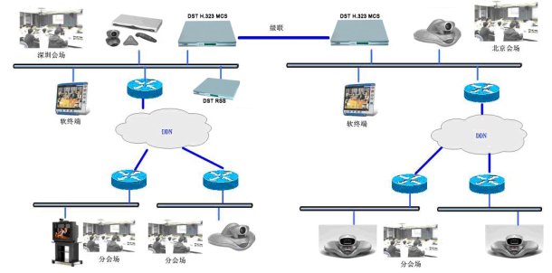 (1)性能穩(wěn)定,MTBF高于120,000小時,完全滿足7×24小時連續(xù)運行模式。此次擴容,招商證券共采用了兩臺DST H.323 MCS,一臺放在深圳總部使用,另一臺放置在北京營業(yè)部,兩臺MCU采用級聯(lián)組網(wǎng),網(wǎng)絡(luò)為4M線路。整套視頻會議系統(tǒng)支持130個會議室型終端接入,并支持若干軟終端接入,其中設(shè)在北京的MCU下轄25臺會議室型終端。由于MCU設(shè)備是整個視訊系統(tǒng)的核心,它的穩(wěn)定性與整個系統(tǒng)的穩(wěn)定性密切相連。因此,性能穩(wěn)定的DST