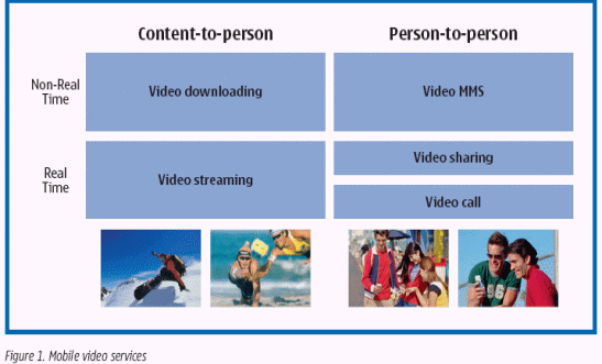 許多移動運(yùn)營商已經(jīng)引領(lǐng)并推出移動視頻服務(wù),它正因視頻流和實(shí)時(shí)P-to-P高質(zhì)量通話的增加,逐步發(fā)展出更多的商機(jī)。ARC組織估計(jì),在2004年里,全世界的移動視頻用戶數(shù)量將增至2400萬,而到2008年,將是10倍的增長,達(dá)到2億4700萬。(摘自:ARC組織發(fā)表的《2003年-2008年,世界移動視頻市場分析和戰(zhàn)略前景》)今天,大約有60個(gè)運(yùn)營商是依據(jù)發(fā)布新聞和其它公共信息資源來推廣移動視頻服務(wù),圖1展示了移動視頻服務(wù)的概念框架。