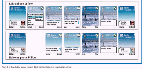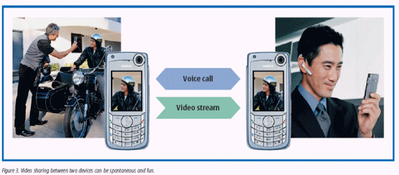在最近一次諾基亞委托進(jìn)行的IP多媒體研究中顯示,消費(fèi)者喜歡增加了視頻共享的視頻電話,有趣的手機(jī)外觀被看作是非常重要的,而視頻共享也被認(rèn)為是非常有用的,被看作是基于視頻短信的MMS的一個(gè)明顯的進(jìn)步。消費(fèi)者喜歡去共享的時(shí)刻是:例如在假期里,購物、舉家外出旅行,或者是一個(gè)周末的夜晚。通過視頻共享來展現(xiàn)你的位置及同行人員,可以確保人身的安全。同樣,視頻共享技術(shù)也可以應(yīng)用于商業(yè)領(lǐng)域,如財(cái)產(chǎn)狀態(tài)監(jiān)視和遠(yuǎn)程檢查野外工作等。