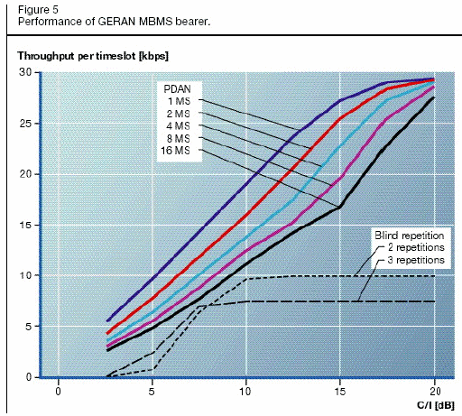 通過(guò)防真測(cè)試表明,在用戶集中的區(qū)域下進(jìn)行速度為40kbps的視頻廣播,在PDAN模式中需要二到四個(gè)時(shí)槽的EDGE信道來(lái)編碼,而盲目重傳模式則需要四個(gè)時(shí)槽的EDGE信道來(lái)編碼。 注意:一個(gè)規(guī)則的點(diǎn)對(duì)點(diǎn)EDGE信道能夠使用兩個(gè)時(shí)槽進(jìn)行相同速率的編碼,但是只有對(duì)一個(gè)使用者。對(duì)三個(gè)使用者,別需要六個(gè)時(shí)間點(diǎn)。四個(gè)使用者需要八個(gè)時(shí)間點(diǎn),等等。 因此,如果有兩個(gè)使用者在通電話,MBMS點(diǎn)對(duì)多點(diǎn)負(fù)載器就象一個(gè)規(guī)則的點(diǎn)對(duì)點(diǎn)連接一樣有效率。和隨著使用者的增加變得更加有效率。