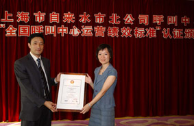 2004年9月16日,上海自來(lái)水市北有限公司正式通過(guò)《全國(guó)呼叫中心運(yùn)營(yíng)績(jī)效標(biāo)準(zhǔn)》(CCCS-PQ)認(rèn)證(四星級(jí)客戶(hù)服務(wù)中心) ,成為中國(guó)公用事業(yè)第一家,也是上海地區(qū)首家通過(guò)此認(rèn)證的呼叫中心。