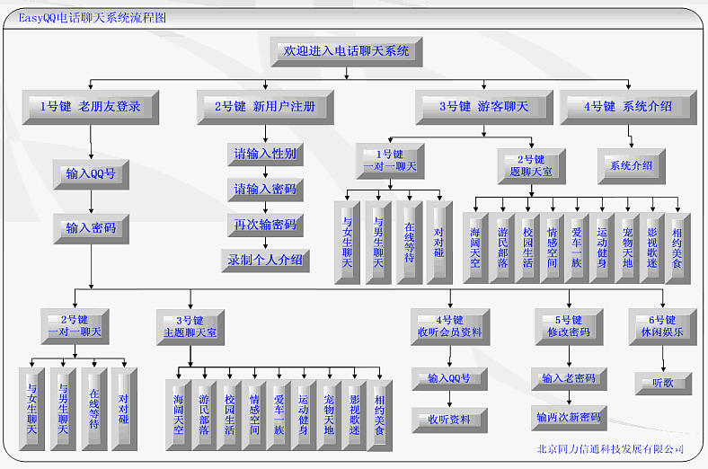 ·EasyQ吧-電話Q吧產(chǎn)品:EasyQ吧是一種即插即用式的電話Q吧實(shí)現(xiàn)方式,通過軟硬件的高度集成,交給客戶的是一套可以立即投入運(yùn)營的電話Q吧系統(tǒng)。IVR接入60/120線,聊天資源64/128方,可以支持32/64個(gè)聊天室同時(shí)開放。系統(tǒng)基于EasyIVR產(chǎn)品實(shí)現(xiàn),可以非常方便地?cái)U(kuò)展功能和修改流程。