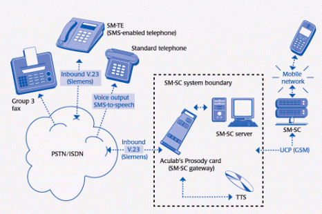 Aculab Prosody PCI板卡的DSP資源最終服務(wù)于此固話SMS業(yè)務(wù)。用戶可利用此業(yè)務(wù)通過移動網(wǎng)絡(luò)向固網(wǎng)用戶發(fā)送多達160個字符的消息;同時,擁有SMS兼容話機的用戶也可以向移動用戶或其它支持SMS的設(shè)備直接發(fā)送和接收SMS信息。