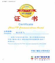 CTI論壇(ctiforum)10月12日消息: 近日,備受關(guān)注的CIPCA2009中國(guó)IP通信大獎(jiǎng)評(píng)選活動(dòng)近日落下帷幕,科大訊飛繼2008年之后,再次捧獲2009年中國(guó)最佳語(yǔ)音識(shí)別合成提供商獎(jiǎng)項(xiàng)。CIPCA中國(guó)IP通信大獎(jiǎng)是國(guó)內(nèi)下一代網(wǎng)絡(luò)通信行業(yè)最專業(yè)、權(quán)威的獎(jiǎng)項(xiàng),由全球IP通信聯(lián)盟發(fā)起,力主公正、公開(kāi)、公平。全球IP通信聯(lián)盟是中國(guó)最大的下一代網(wǎng)絡(luò)/通信行業(yè)門(mén)戶媒體及行業(yè)聯(lián)盟,縱跨固網(wǎng)和移動(dòng),涵蓋UC統(tǒng)一通信、IP語(yǔ)音、視頻、呼叫中心、即時(shí)通信、無(wú)線通信、IPTV等下一代通信各領(lǐng)域以及相關(guān)的安全、測(cè)試、芯片等行業(yè)。中國(guó)IP通信大獎(jiǎng)通過(guò)網(wǎng)絡(luò)評(píng)比與專家測(cè)評(píng)相結(jié)合的形式選拔產(chǎn)生,旨在肯定業(yè)內(nèi)優(yōu)秀企業(yè)為行業(yè)發(fā)展所作的努力與貢獻(xiàn),推動(dòng)市場(chǎng)的良性發(fā)展,同時(shí)為行業(yè)用戶提供一個(gè)權(quán)威的參考平臺(tái)。
