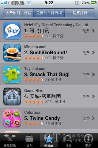 CTI論壇(ctiforum)5月24日消息(記者 張潔):科大訊飛推出的移動(dòng)互聯(lián)網(wǎng)時(shí)代語(yǔ)音創(chuàng)新應(yīng)用——訊飛口訊,自5月18日登陸App Store為用戶(hù)提供免費(fèi)下載應(yīng)用以來(lái),迅即得到了國(guó)內(nèi)外蘋(píng)果手機(jī)用戶(hù)的高度關(guān)注和熱烈支持,短短兩天時(shí)間之內(nèi)即在App Store免費(fèi)項(xiàng)目排行榜登頂,并已持續(xù)多日占據(jù)榜首位置。排行榜位置是由用戶(hù)下載量、實(shí)際應(yīng)用頻率和用戶(hù)評(píng)價(jià)等各項(xiàng)指標(biāo)綜合評(píng)定形成的,充分顯示了廣大“果粉”對(duì)于“訊飛口訊”這一創(chuàng)新性應(yīng)用的喜愛(ài)與高度認(rèn)可。