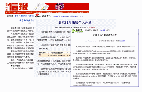 北京向?qū)峋經(jīng)過一個多月緊張的開通工作,終于于4月18號正式開通。新浪、網(wǎng)易、TOM等媒體爭相報道北京向?qū)У拈_通情況。