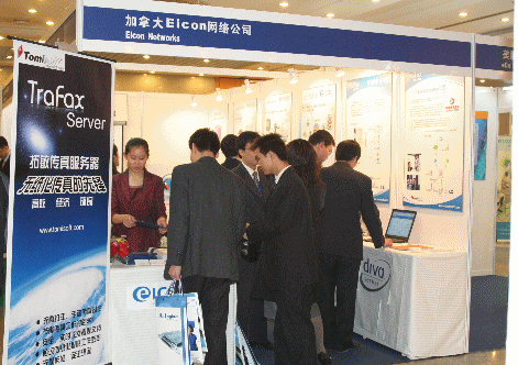 拓敏軟件Tomisoft與加拿大Eicon Networks共同展示了拓敏傳真服務(wù)器TraFax Server----企業(yè)級無紙化傳真解決方案。在精美的展板與宣傳冊的配合下,通過講解員的專業(yè)介紹,盡情地展示了目前國內(nèi)最優(yōu)秀的無紙化傳真解決方案的非凡風采。TraFax Server與CallCenter、 CRM、ERP的完美結(jié)合引起了與會代表們的關(guān)注。