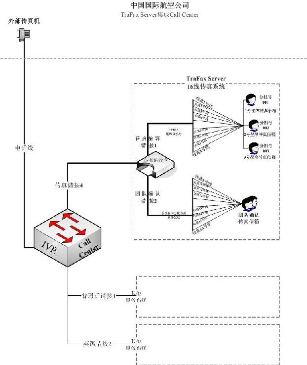 8月, 中國國際航空股份有限公司Call Center與北京拓敏TraFax Server傳真服務器的系統(tǒng)集成工作順利完成。由此,國航的信息化建設工作再次向前邁出了一大步,國航的辦事效率、服務水平以及市場競爭力等也都跟著上了一個新臺階。