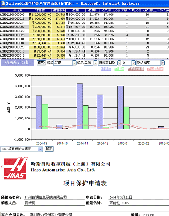 ,"可擴(kuò)展樣式語言轉(zhuǎn)換")來制作。這種語言也是通用的,并且容易掌握。為了獲得更強(qiáng)大的功能,XSLT允許插入Javascript等一些其他語言或者插件。在這些語言的操縱下,結(jié)果樹的輸出形式是非常靈活的。下圖是國內(nèi)知名的CRM軟件--SynleadCRM企業(yè)版將其XML數(shù)據(jù)源轉(zhuǎn)換成的一些報表和圖表: