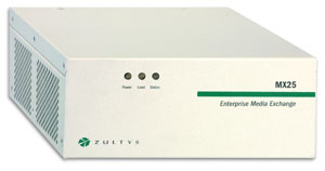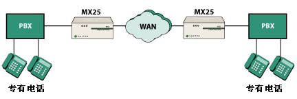 MX25 是一種能夠在兩種不同模式下工作的模塊化設(shè)備。在其中一種工作模式下,MX25 是一個(gè)通向 PSTN 網(wǎng)關(guān)的獨(dú)立 SIP。當(dāng)在這種模式下工作時(shí),MX25 轉(zhuǎn)換電話呼叫的格式,使其可以在 IP 網(wǎng)絡(luò)與公用電話網(wǎng)絡(luò)之間傳遞。另一種工作模式是,將 MX25 作為 MX250 的功能延伸系統(tǒng),用于不超過(guò) 25 個(gè)用戶(hù)的分支辦公室。在這種配置下,MX25 與 MX250 通信并交換有關(guān)用戶(hù)和設(shè)備的信息。即使連接 MX250 和 MX25 的 WAN 鏈路出現(xiàn)故障,MX25 也能繼續(xù)工作并處理來(lái)自/發(fā)往 PSTN 的傳入/傳出呼叫。