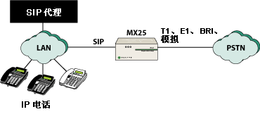 MX25 可以提供模塊化 SIP 網(wǎng)關(guān)的功能,這對(duì)于企業(yè)的許多應(yīng)用程序是很有益的。其撥號(hào)計(jì)劃實(shí)現(xiàn)了多個(gè) SIP 服務(wù)器(內(nèi)部和外部)以及電話電路之間的路由,這使得它幾乎可以在每一個(gè) VoIP 應(yīng)用程序中工作。
